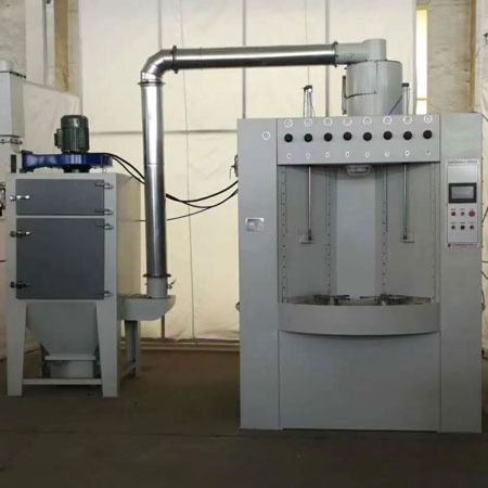 转盘式自动喷砂机又称全自动喷砂机、间歇式自动砂石机和连续式自动抛丸机。他也是一台高生产率的自动喷砂机。喷砂转盘配有多个小转盘,分为喷砂装卸货区、喷砂处理区、喷砂处理区域和吹砂室4个区域。需要喷砂机的产品手动放置在喷砂装卸货区。转盘会自动旋转,整个旋转在360°人工只需要站在同一位置装卸产品。